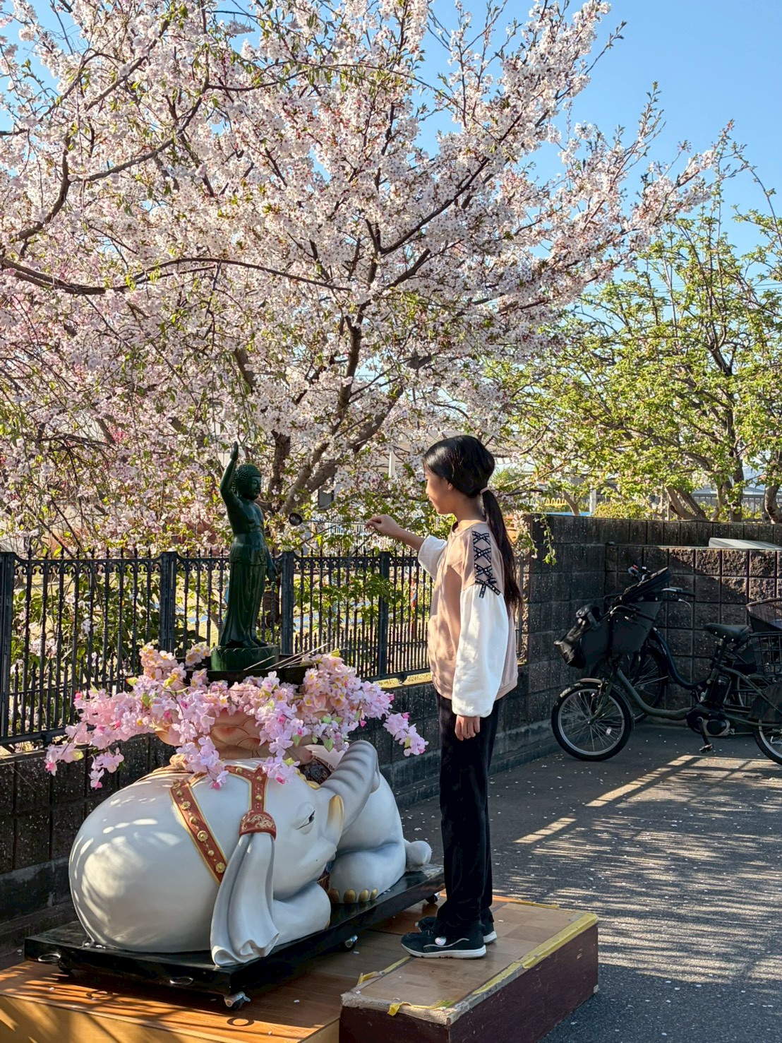 園庭と境内のソメイヨシノが満開を迎え、雨の谷間の奇跡の快晴に恵まれました!誕生仏サクラ